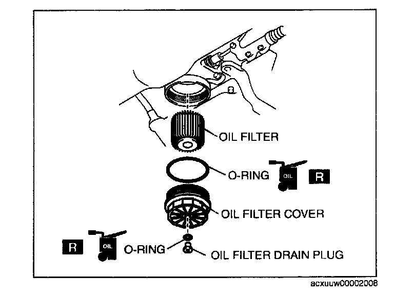 Oil filter cover: 30 - 35 Nm (3.1 - 3.5 kgf-m, 22.2 - 25.8 ft-lbf)