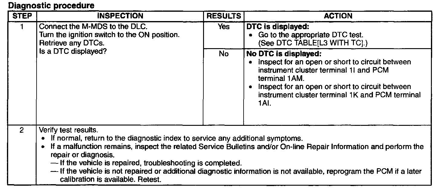 Malfunction Indicator Lamp: Testing and Inspection