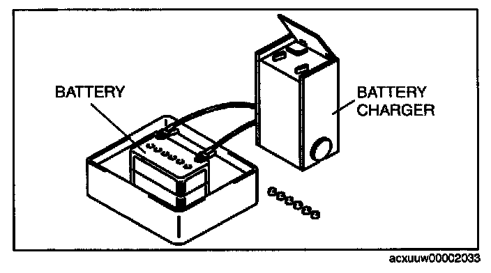 3. Connect a battery charger to the battery and adjust the charging current as follows.