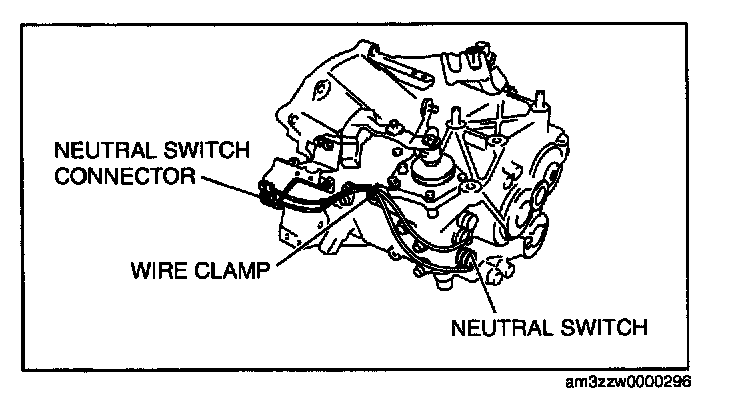 6. Clamp both the neutral switch and back-up light switch wiring harnesses as shown in the figure.