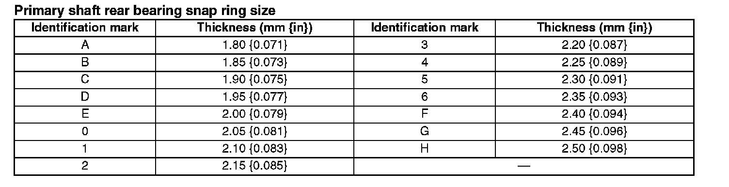 ^ If not within the specification, adjust it by selecting a proper snap ring from below.