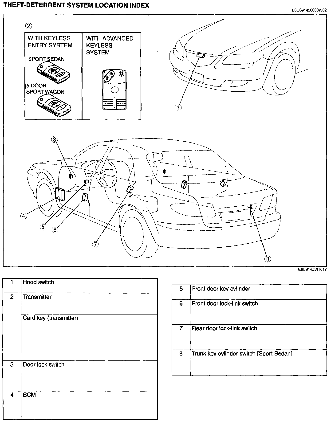 Power Door Lock System And Keyless Entry Location Index [With Advanced Keyless System]: