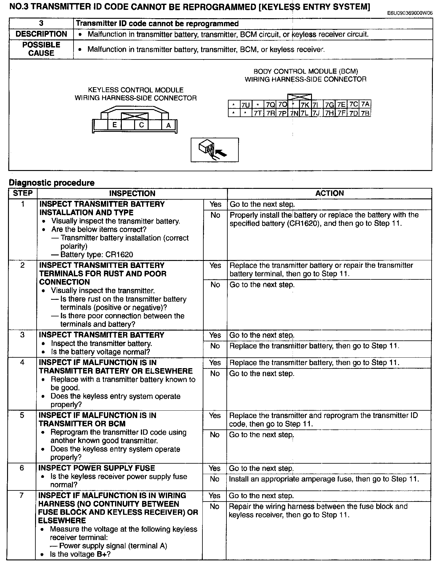 No.3 Transmitter ID Code Cannot Be Reprogrammed [Keyless Entry System]