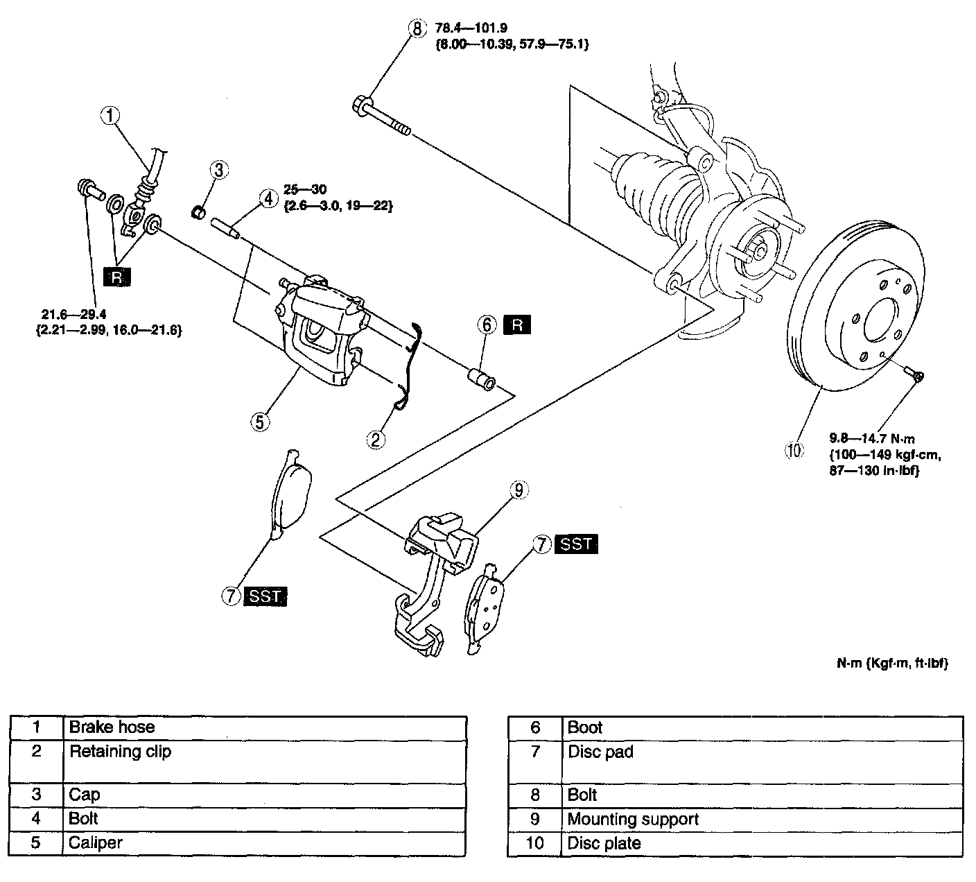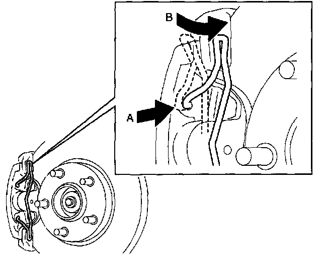 1. Temporarily install the retaining clip to the caliper and mounting support as shown in the figure.