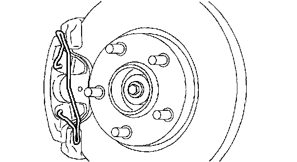 3. Verify that the retaining clip is securely installed to the caliper and the mounting support.