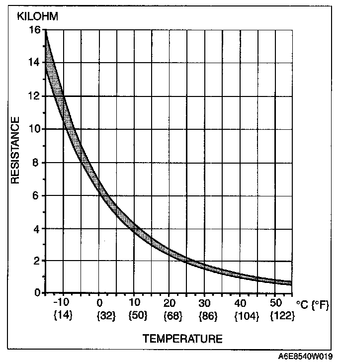 - If the resistance is not as shown in the graph, replace the ambient temperature sensor.