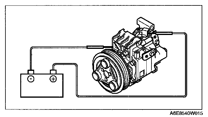 MAGNETIC CLUTCH INSPECTION[L3 WITH TC]1. Connect battery positive voltage to terminal A of magnetic clutch and ground to A/C compressor body.