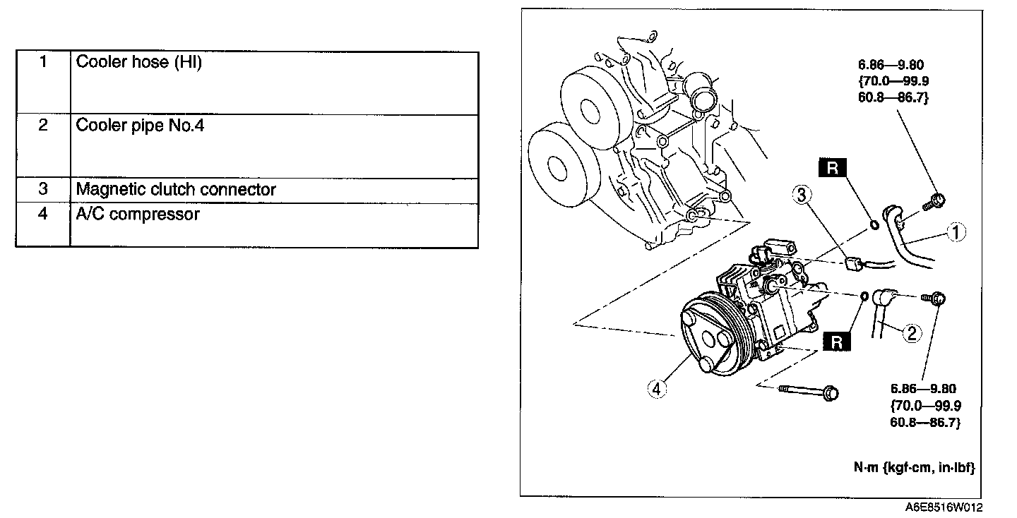 5. Remove in the order indicated in the table. Do not allow compressor oil to spill.