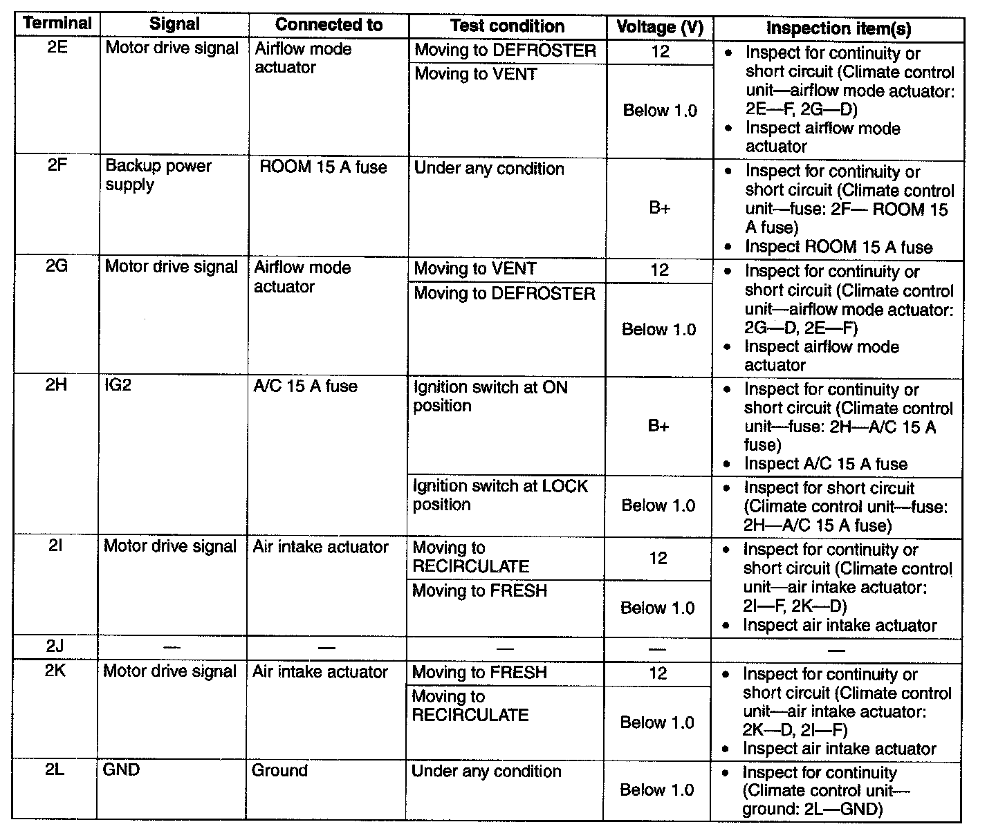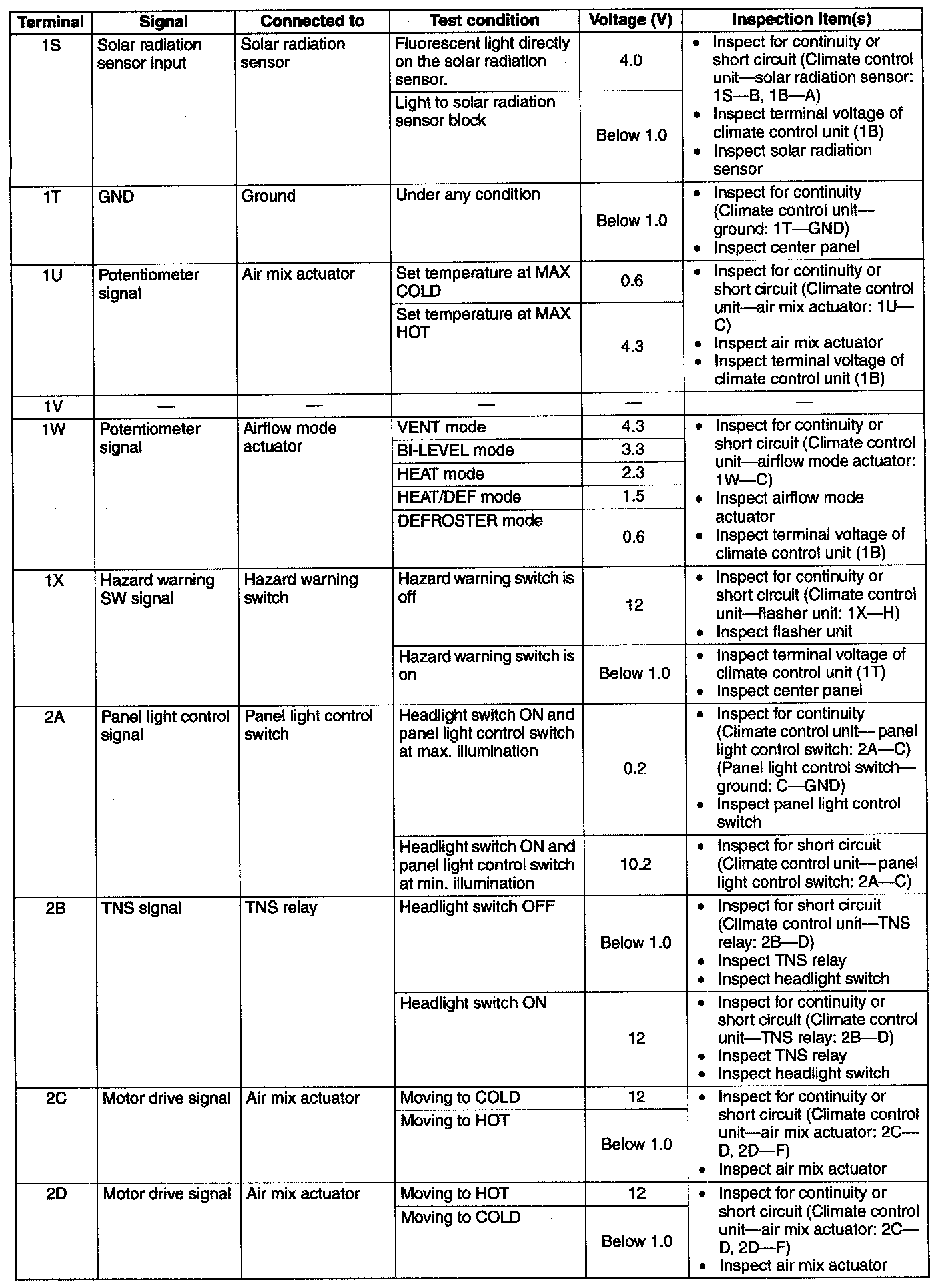 Pinout Values and Diagnostic Parameters