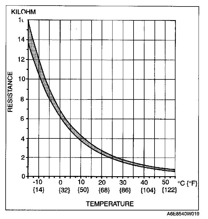 - If the resistance is not as shown in the graph, replace the evaporator temperature sensor.