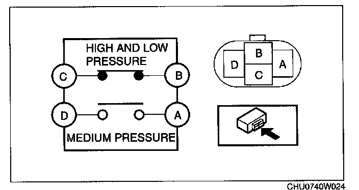 - If the continuity is not normal, replace the refrigerant pressure switch.