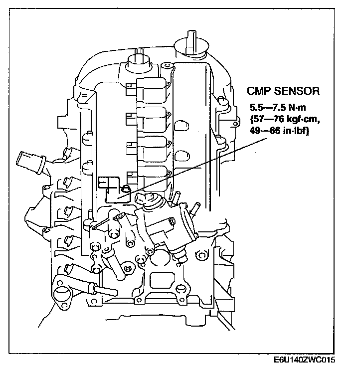 CAUTION: When replacing the CMP sensor, make sure there is no foreign material on it such as metal shavings. If it is installed with foreign material, the sensor output signal will malfunction resulting from fluctuation in magnetic flux and cause a deterioration in engine control.