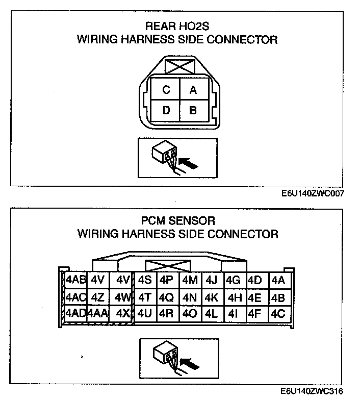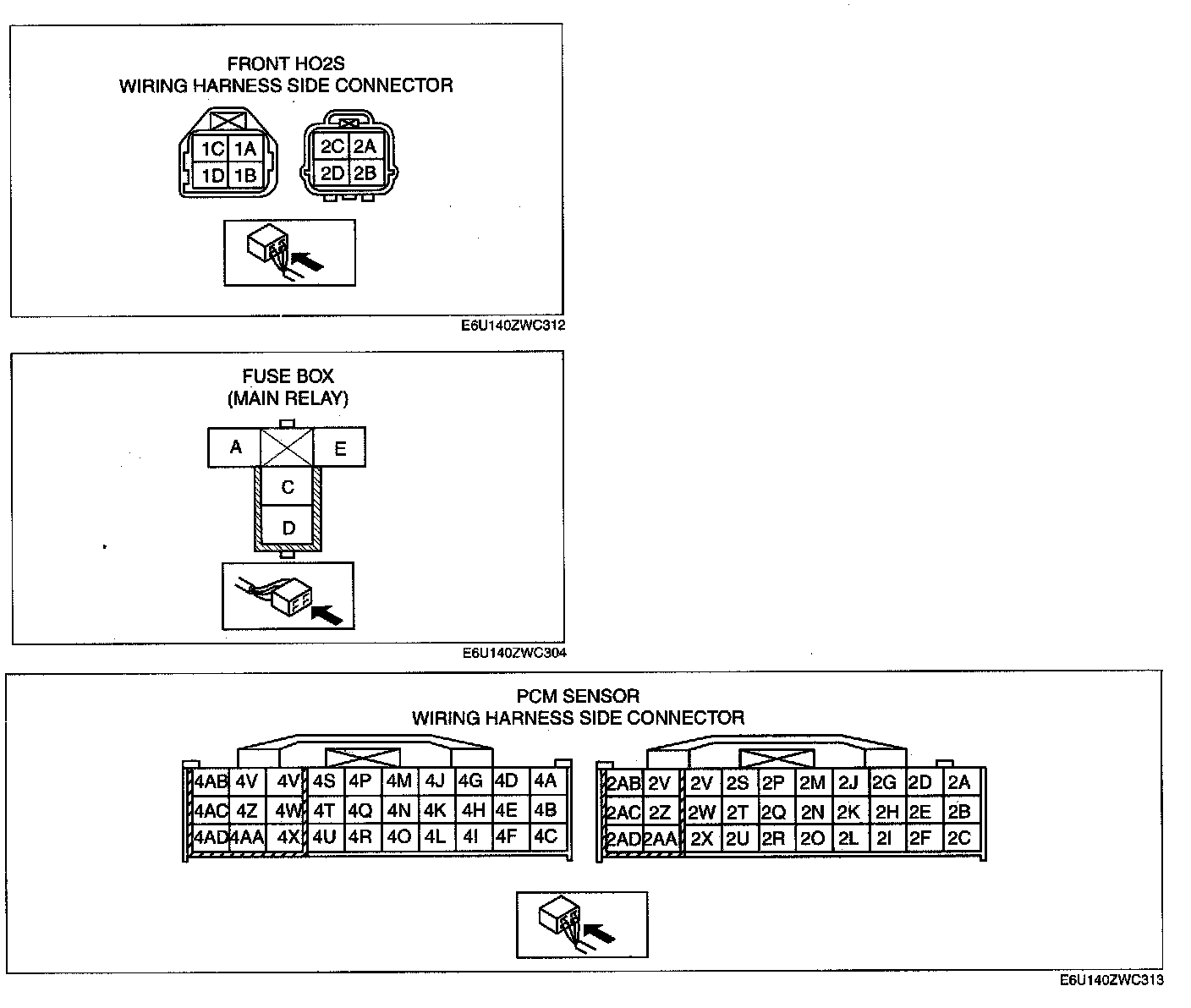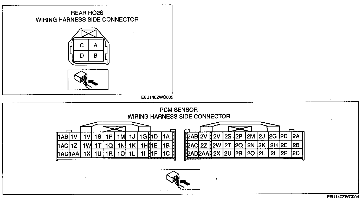 - Front HO2S terminal 2D and PCM terminal 4AD