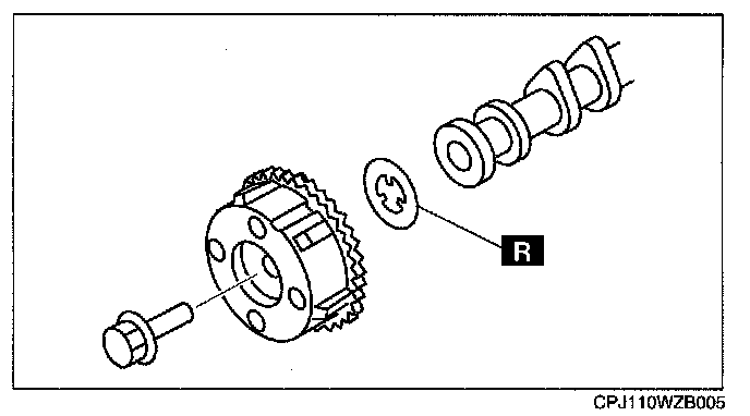 1. Referring to the valve clearance adjustment procedure, remove the variable valve timing actuator and the camshaft on the intake air side as a single unit.