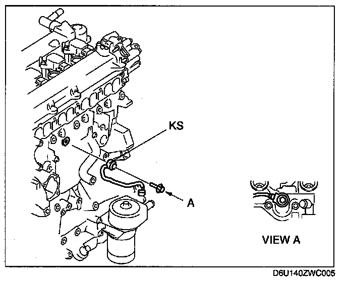 KNOCK SENSOR (KS) REMOVAL/INSTALLATION[L3 WITH TC]CAUTION: Be careful not to impact the sensor.Verify that there is no debris between the sensor and the cylinder block before installing.