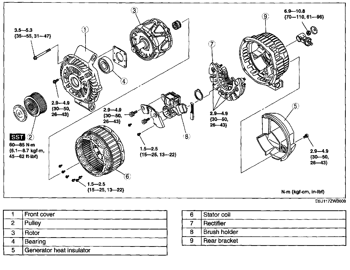 Tightening torque 60-85 N.m (6.1-8.7 kgf-m, 45-62 ft-lbf)