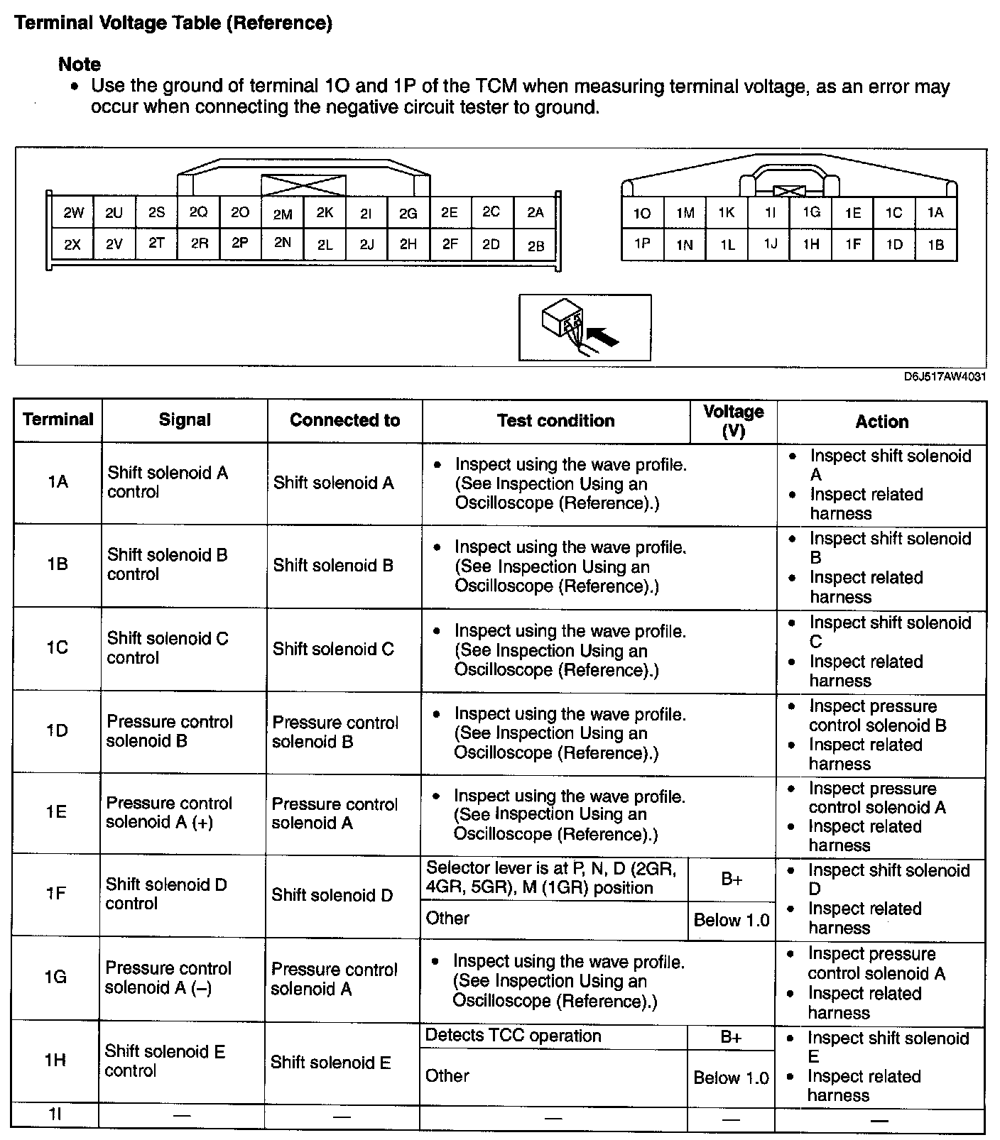 ^ If any incorrect voltage is detected, inspect the related system(s), wiring harnesses and connector(s) referring to the Action column in the terminal voltage table.