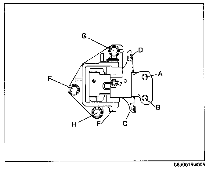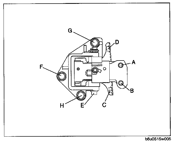 11. Tighten nuts F, G in order of F->G, then bolt H.