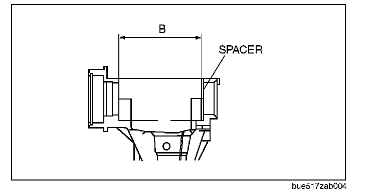 6. Measure the width of the front carrier ring gear installation area with the spacer installed. This is dimension B.
