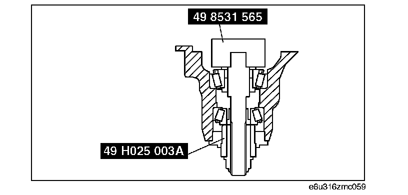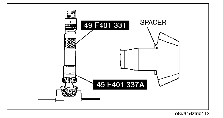 13. Using the plastic hammer, assemble the selected adjustment shim in between the spacer and bearing race as shown in the figure.