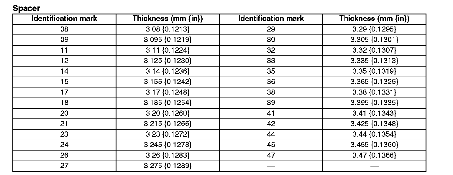 8) Measure the average value between the values of both sides measured in Step 7. This value is the spacer thickness which determines the pinion height.