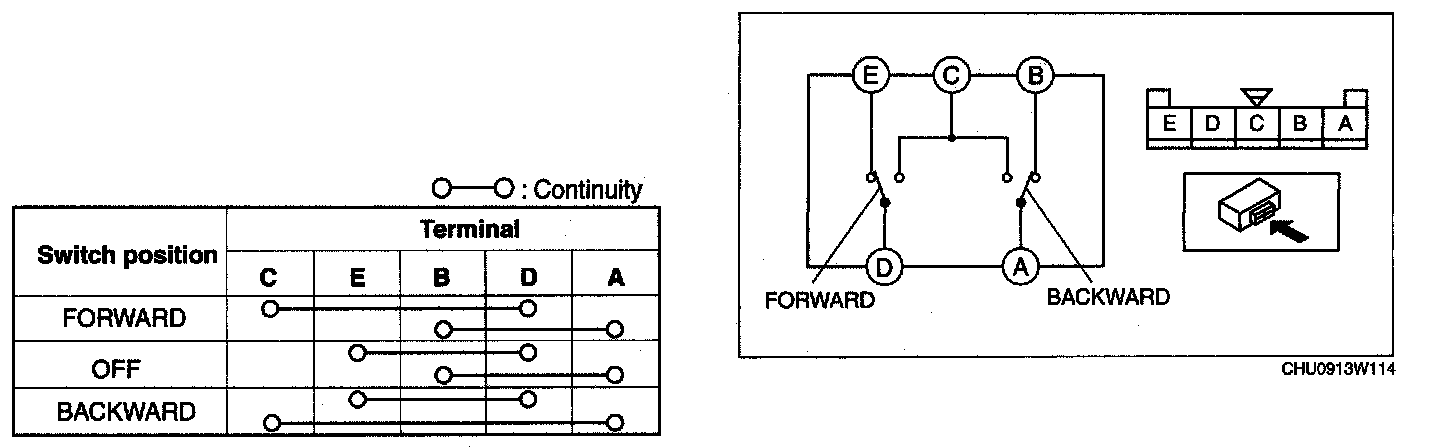 2. Verify that the continuity between the lumbar support switch terminals is as indicated in the table.