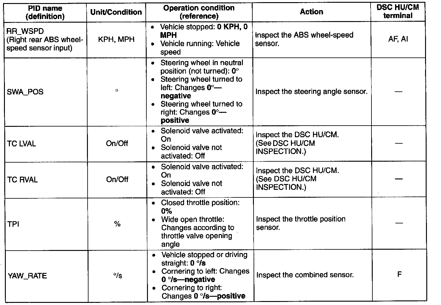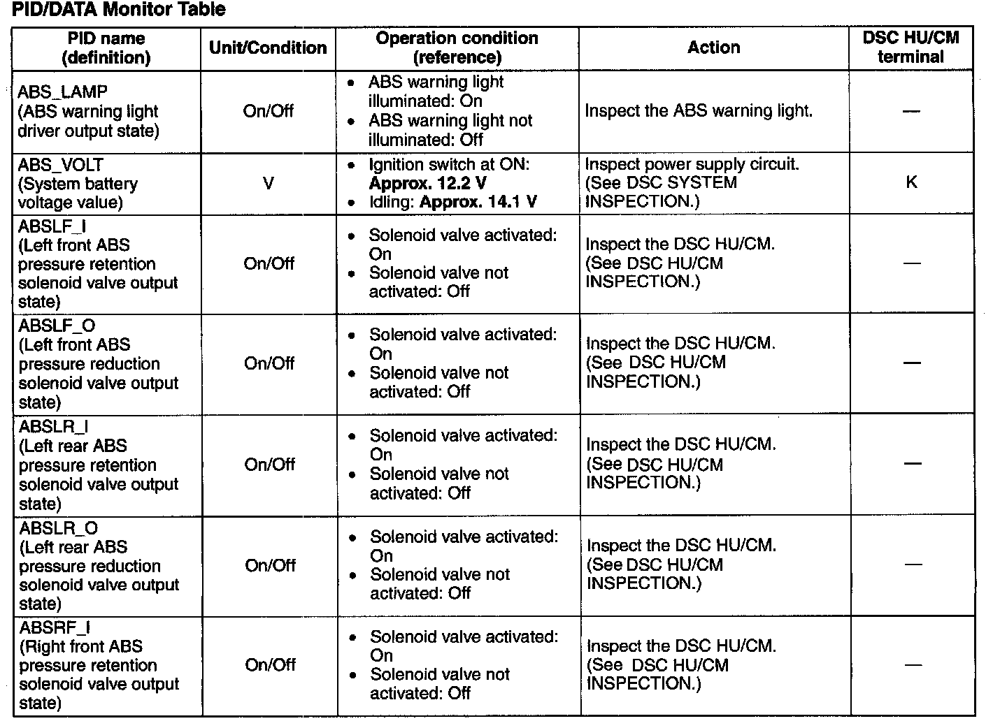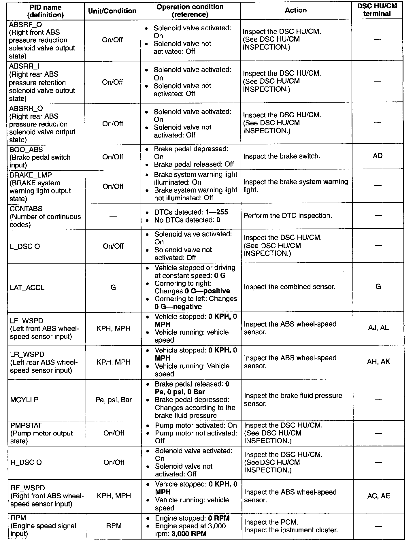 PID/DATA Monitor Table (part 1):