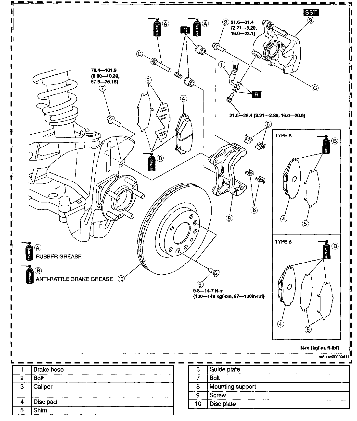 FRONT BRAKE (DISC) REMOVAL/INSTALLATION1. Remove in the order indicated in the table.