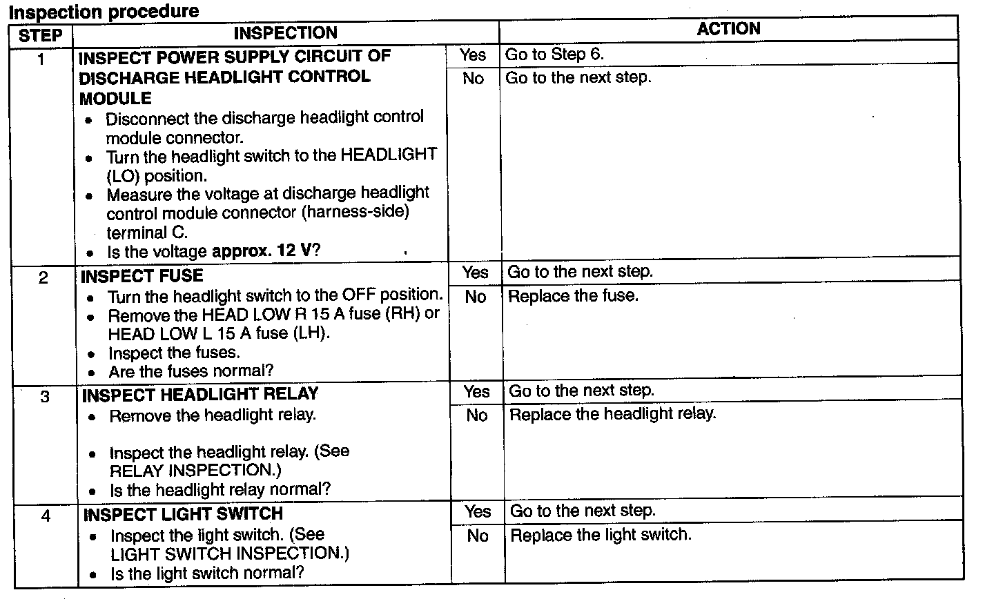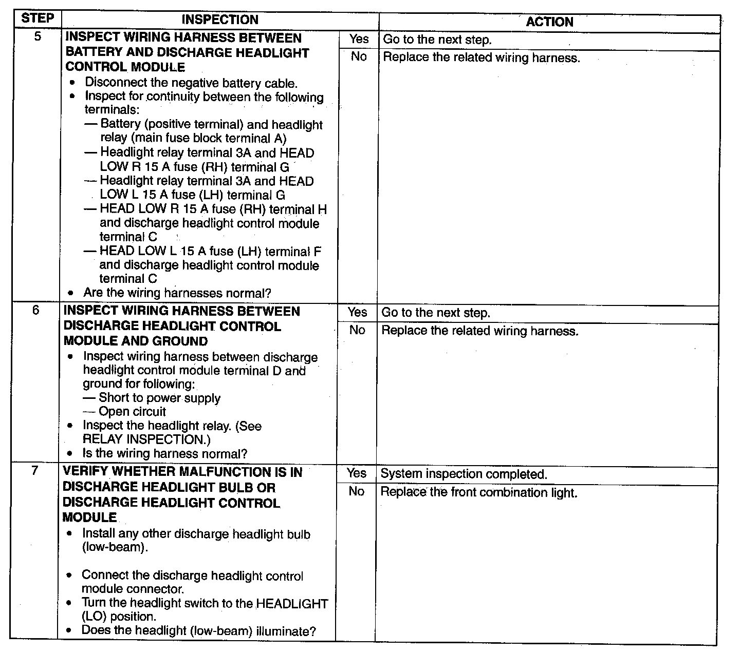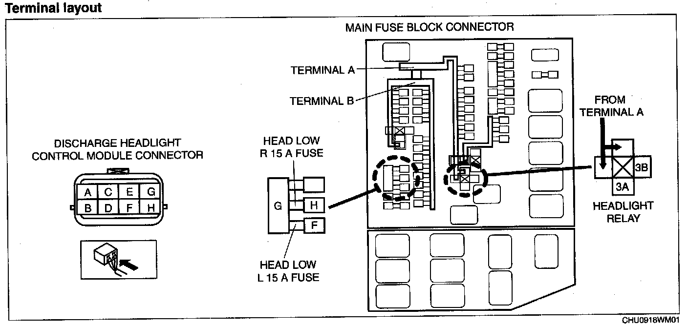 DISCHARGE HEADLIGHT SYSTEM INSPECTIONTerminal Layout: