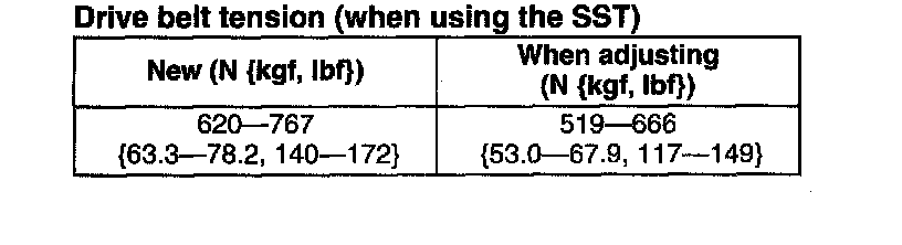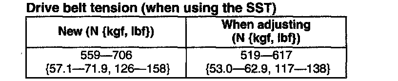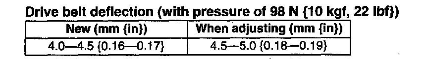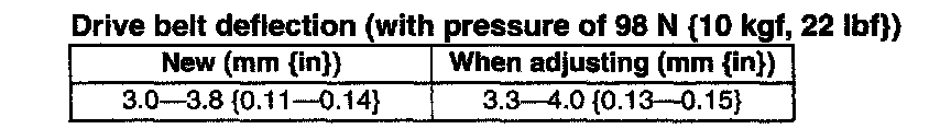 Drive Belt Deflection (with Pressure Of 98 N {10 kgf, 22 lbf}):