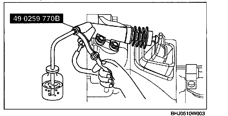 4. While the clutch pedal is being held down, the other person should loosen the bleeder screw using the SST, and bleed any fluid containing air bubbles. Once completed, tighten the bleeder screw.
