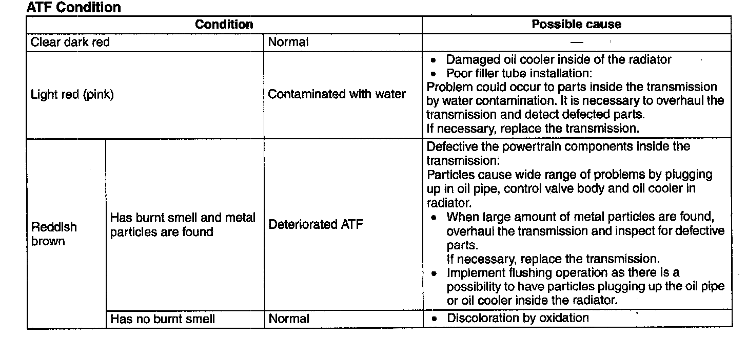 1. Inspect the ATF for the following to determine whether the transmission should be disassembled.