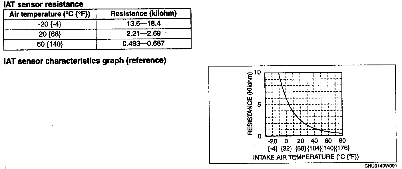 INTAKE AIR TEMPERATURE (IAT) SENSOR INSPECTIONNOTE: Before performing the following inspection, make sure to follow the troubleshooting flowchart. (See FOREWORD.) Foreword