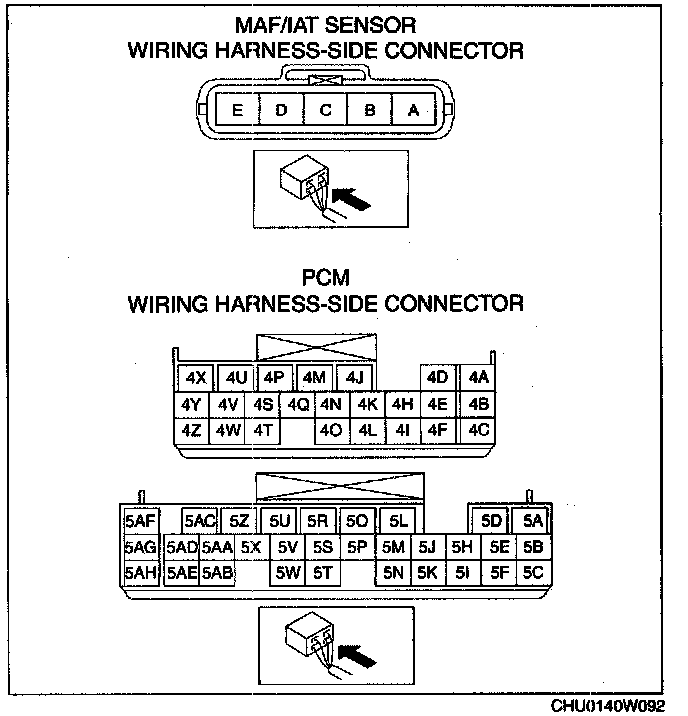 - MAF/IAT sensor terminal E and PCM terminal 4U