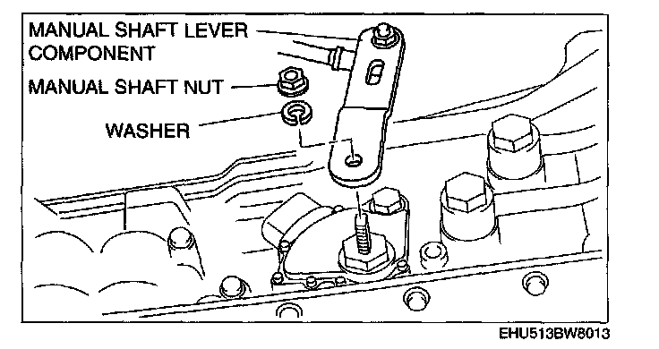 ^ Do not use an impact wrench. Hold the manual shaft lever when removing the manual shaft nut, otherwise the transmission may be damaged.