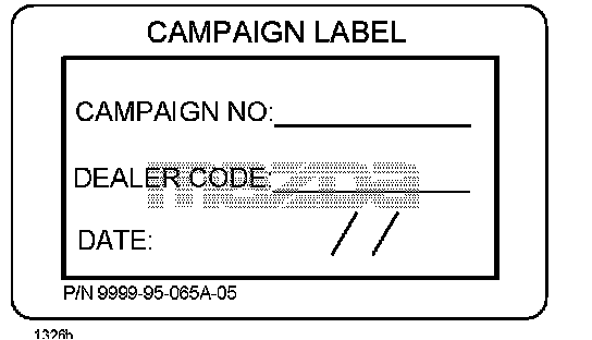 6. Fill out a blue "Campaign Label" (9999-95-065A-05) with the Campaign No: "MSP16", your dealer code, today's date, and affix it to the vehicle's
