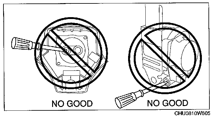 - Inserting a screwdriver or similar object into the connector of an air bag module or a pre-tensioner seat belt may damage the connector and cause the air bag module or the pre-tensioner seat belt to operate (deploy) improperly, which may cause serious injury. Never insert any foreign objects into the air bag module or seat belt connectors.