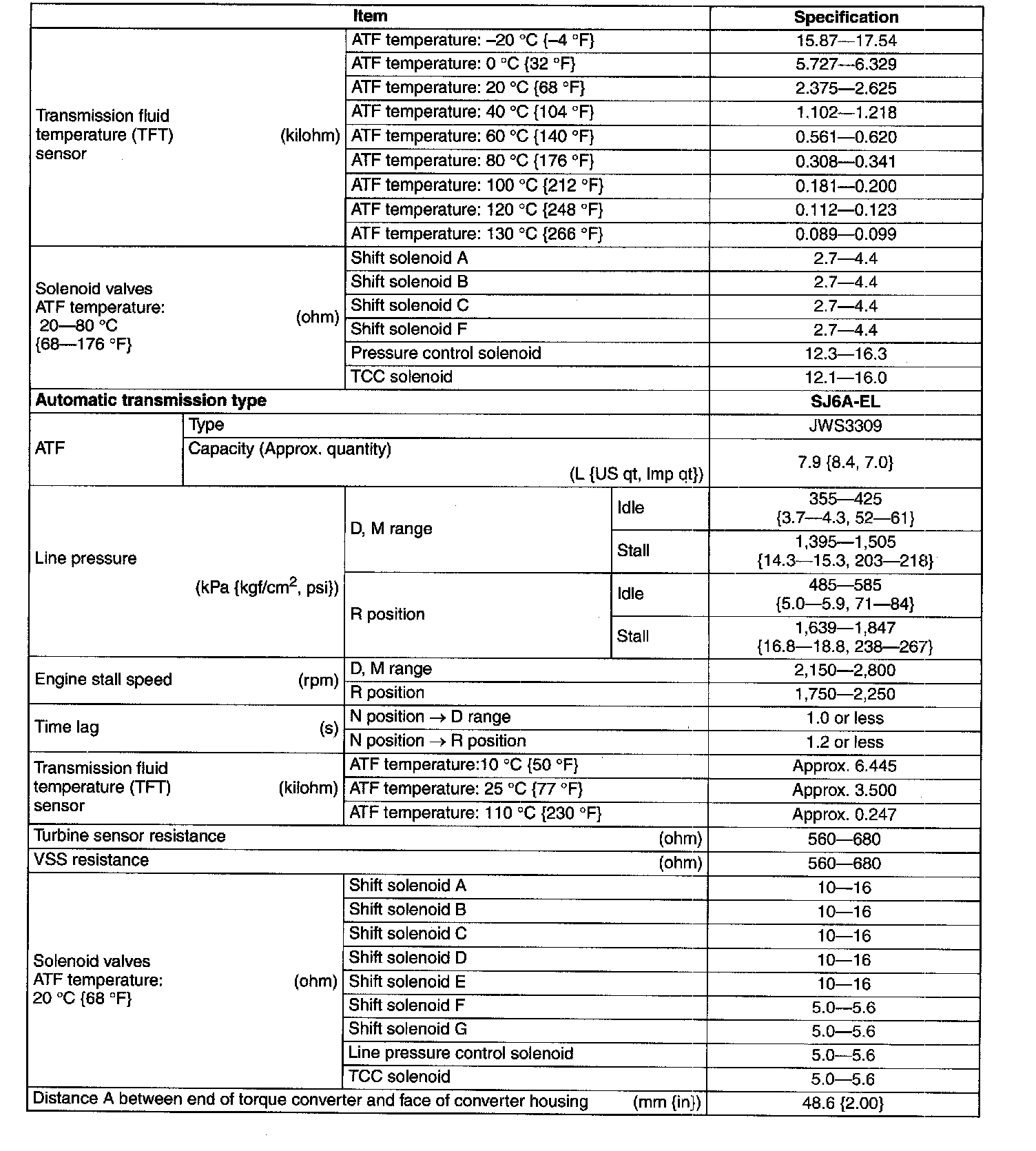 TRANSMISSION/TRANSAXLE TECHNICAL DATA (Part 2):