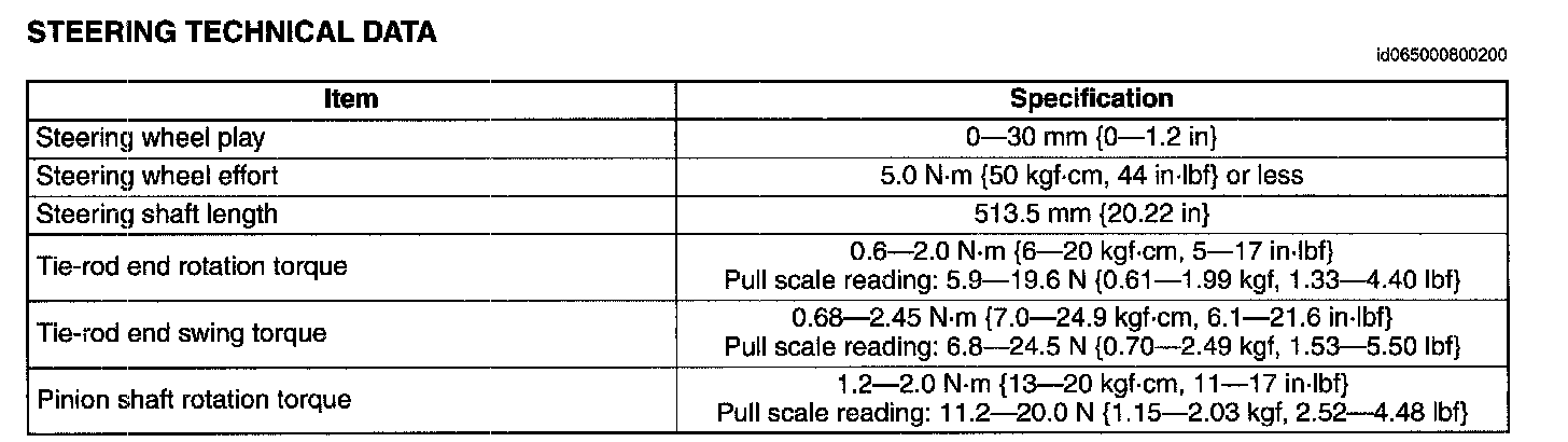 Steering Technical Data: