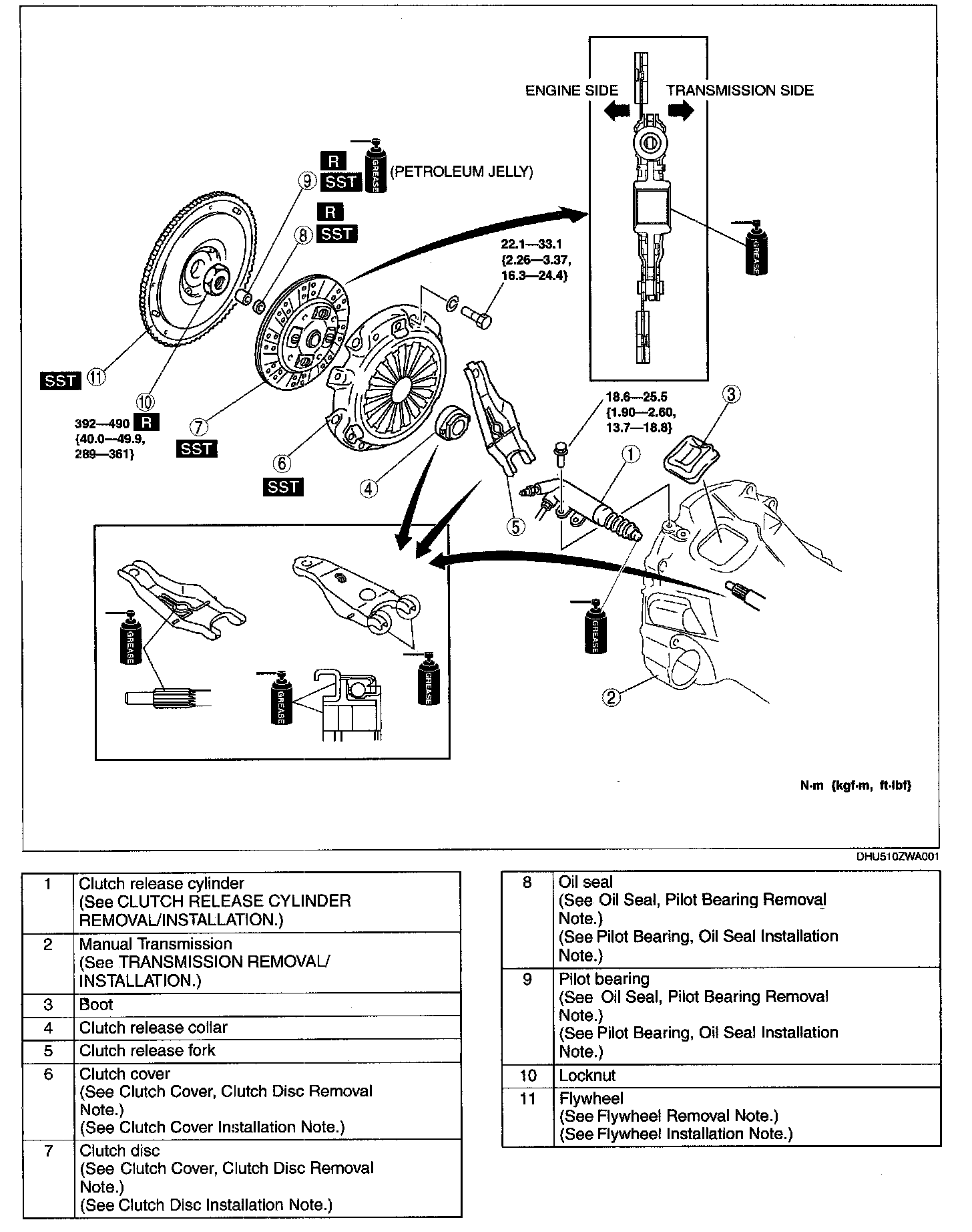 CLUTCH UNIT REMOVAL/INSTALLATION1. Remove in the order indicated in the table.