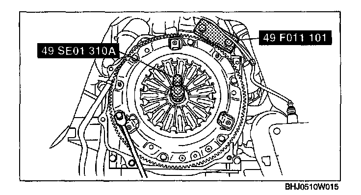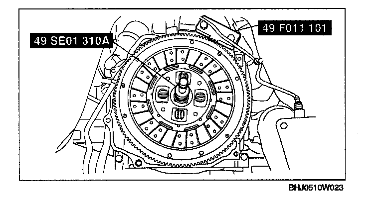 3. Secure the clutch disc to the flywheel using the SSTs.