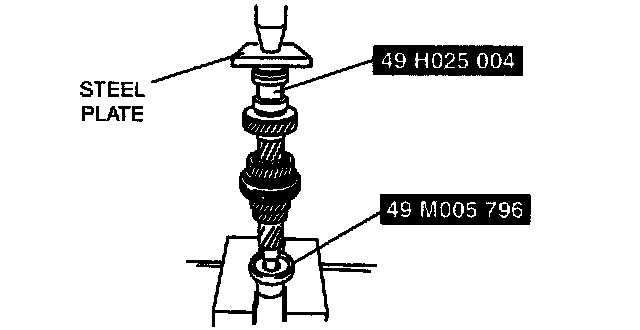 3. Carefully install the clutch hub component (3rd/ 4th) using the SSTs and a press.