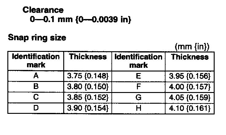 2. Select the new snap ring from the table so that the clearance measured in Step 1 is within specification, and install it in the countershaft gear.