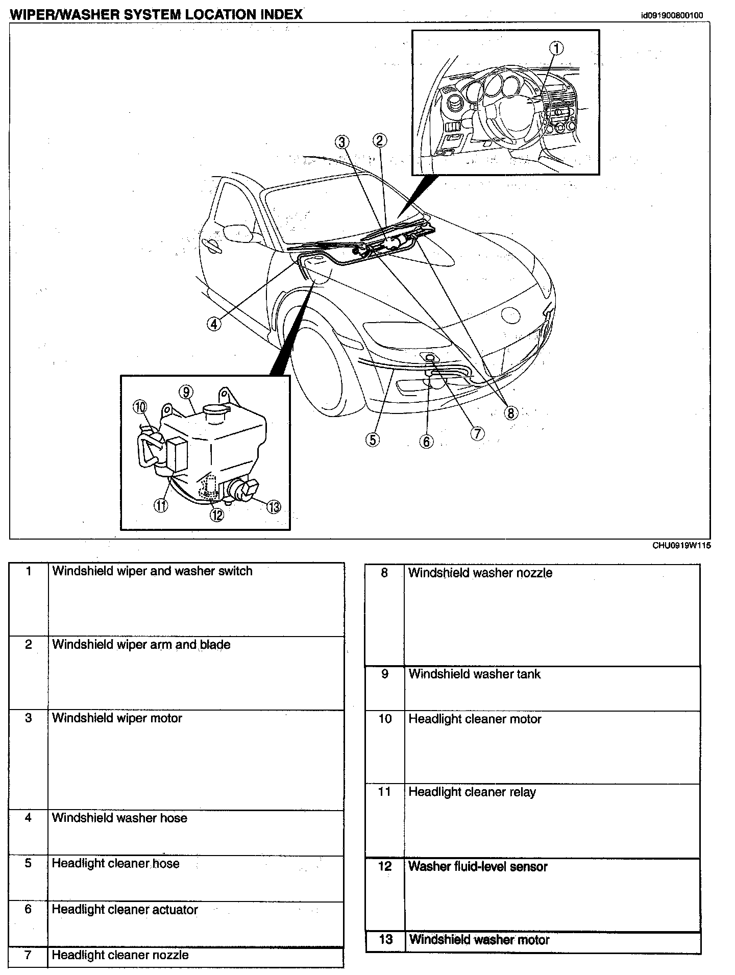 Wiper/Washer System Location Index: