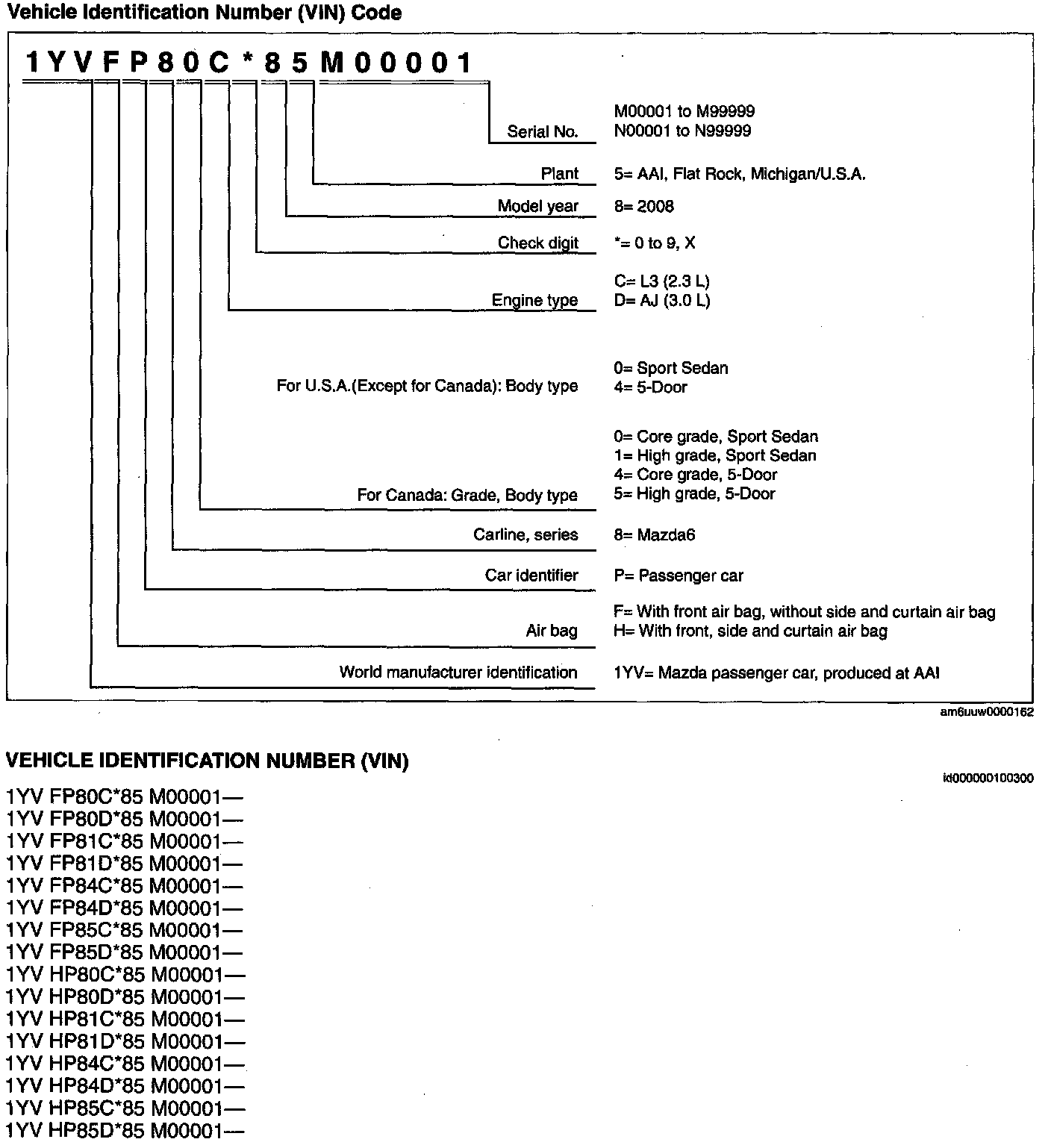 Vehicle Identification Number (VIN) Code: