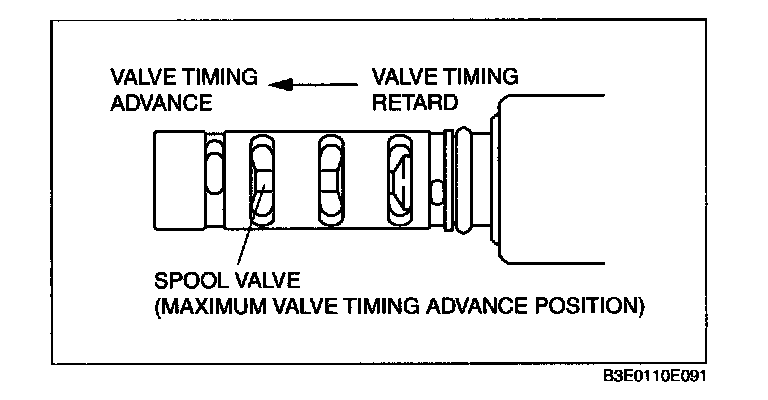 6. Stop applying battery positive voltage and verify that the spool valve returns to the maximum valve timing retard position.