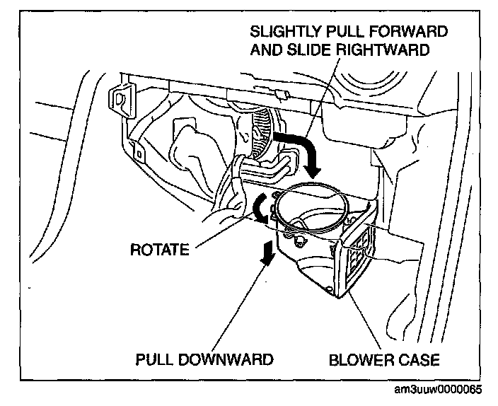 CAUTION: To prevent damage to the sirocco fan, pull the blower motor out being careful that the blower motor does not interfere with the A/C unit.