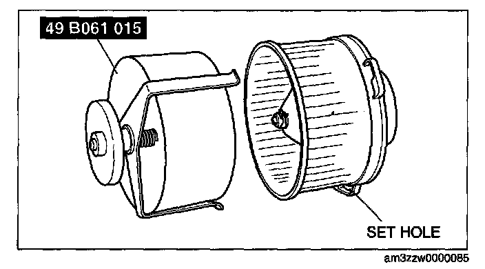 2. Install the blower motor with the SST (49 B061 015) installed, to the A/C unit.