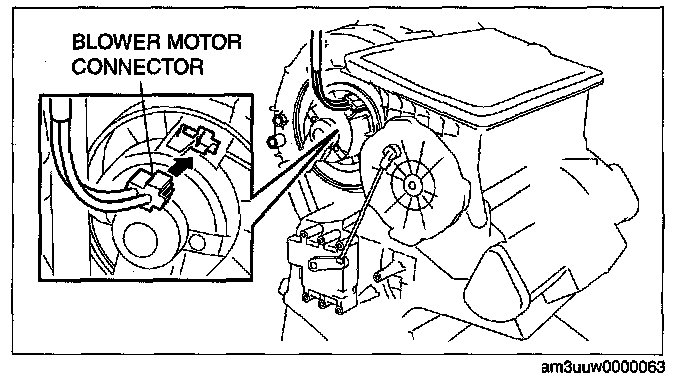 15. Disconnect the blower motor connector as shown in the figure.