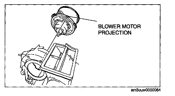 1. Position the blower motor projection upward and install the blower motor to the A/C unit.
